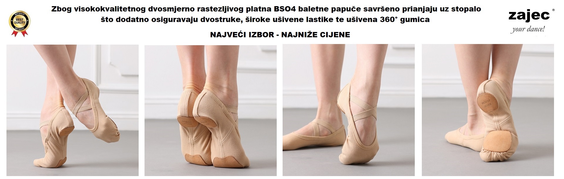 Platnene rastezljive baletne papuče BS04
