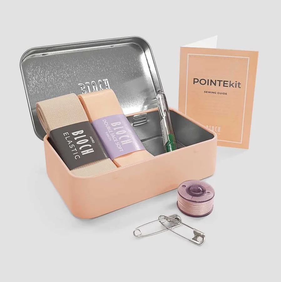 The must-have kit for every pointe dancer! Our Professional Pointe Shoe Kit contains double-faced soft satin ribbon (non-stretch), wide covert elastic, a stitch remover, two safety pins and needle with pink thread for stitching.