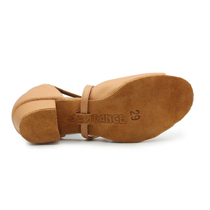 Zakoračite u gracioznost s ovim elegantnim sandalama za latino ples dizajniranim posebno za mlade plesače. Dostupne u sofisticiranoj bež boji, ove plesne cipele imaju pažljivo dizajniranu nisku petu koja pruža stabilnost, a istovremeno omogućuje pravilan razvoj tehnike. Izrađene od prave kože, nude izdržljivost i udobnost za duge sate vježbanja ili nastupa. Siguran sustav kopčanja osigurava savršeno pristajanje i sprječava klizanje tijekom zamršenih plesnih pokreta. Uložak s jastučićima pruža udobnost, dok potplat od brušene kože nudi idealnu ravnotežu prianjanja i klizanja potrebnu za latino plesne stilove. Ove svestrane cipele za standardne plesove prikladne su za razne latino plesne oblike, uključujući salsu, rumbu i cha-cha. Njihov klasični dizajn čini ih prikladnima i za vježbe i za nastupe. Cipele imaju kvalitetne šavove i konstrukciju koji mogu izdržati zahtjeve redovite plesne prakse. Savršene za početnike i plesače srednjeg nivoa, ove sandale kombiniraju stil, udobnost i funkcionalnost u jednom prekrasnom paketu.