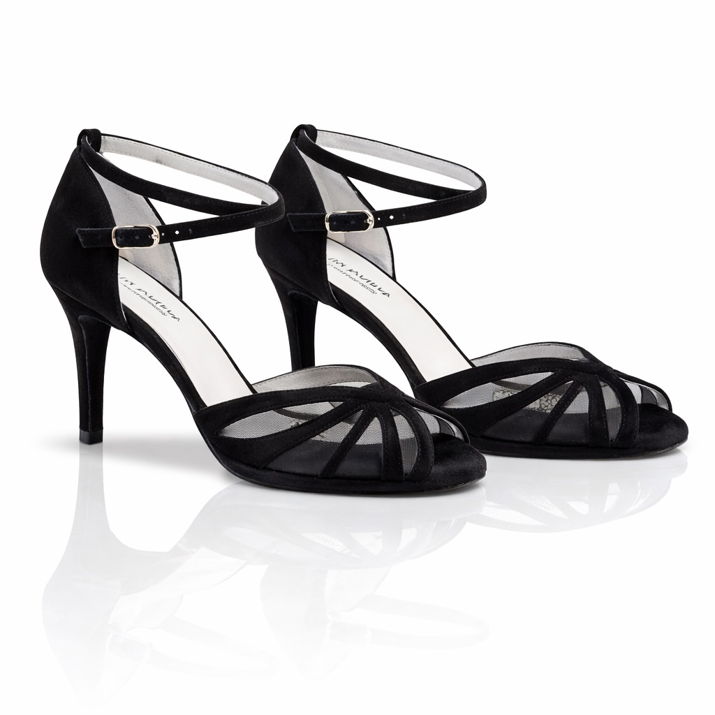 Plateau stiletto with elegant black suede look. The elegant tip division at the front and individually adjustable ankle strap guarantee optimum, secure hold when dancing.