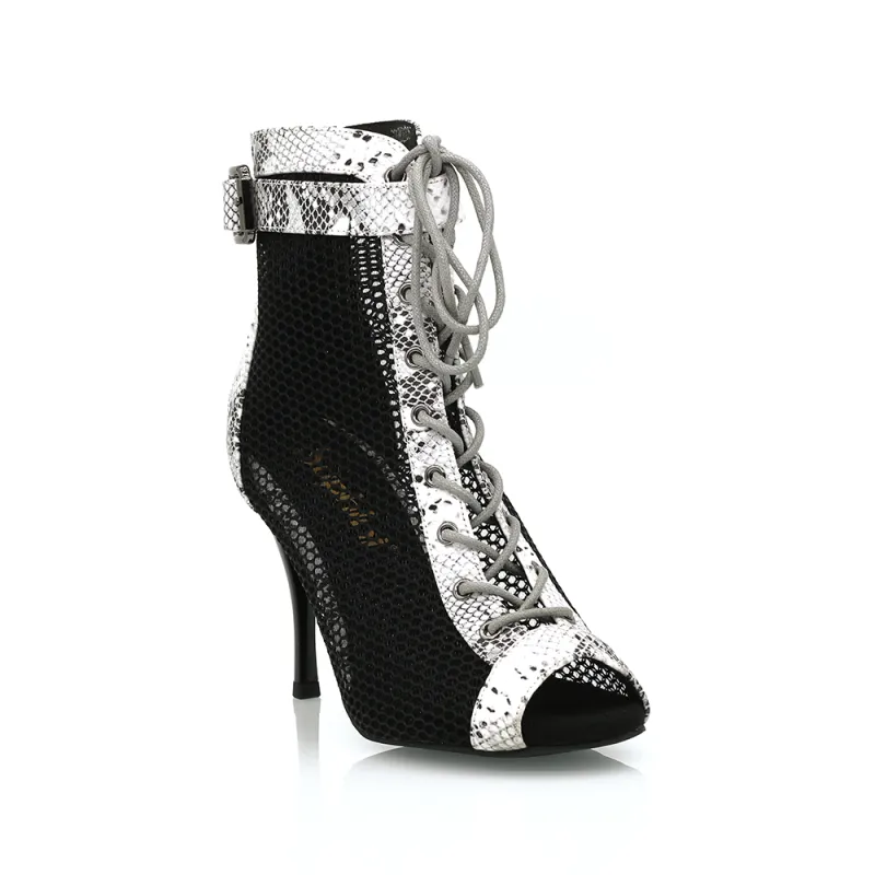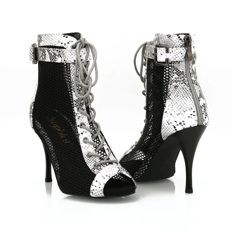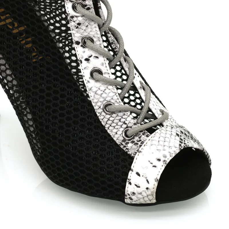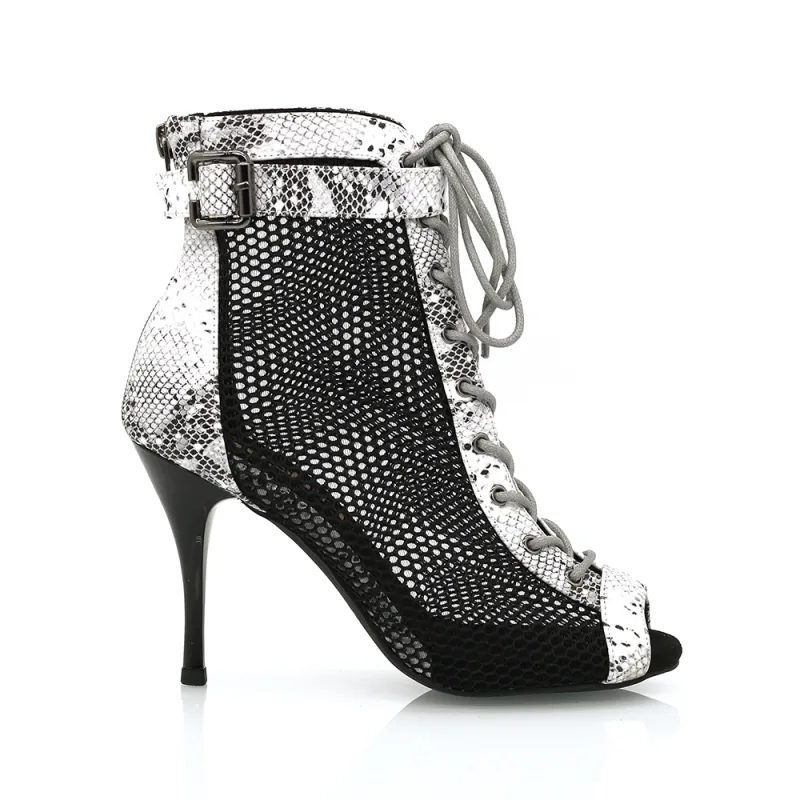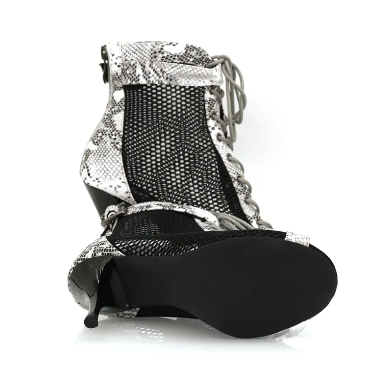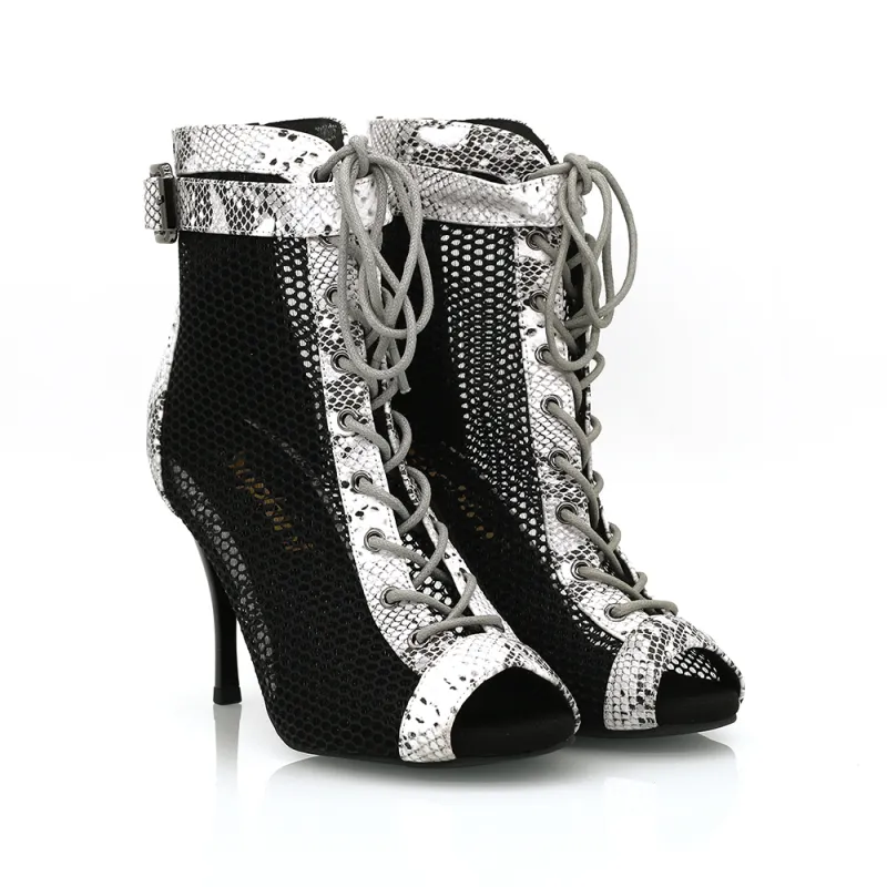 Gray Snake Skin Ankle Bukle With Mesh 9cm Heels Dance Ankle Boots